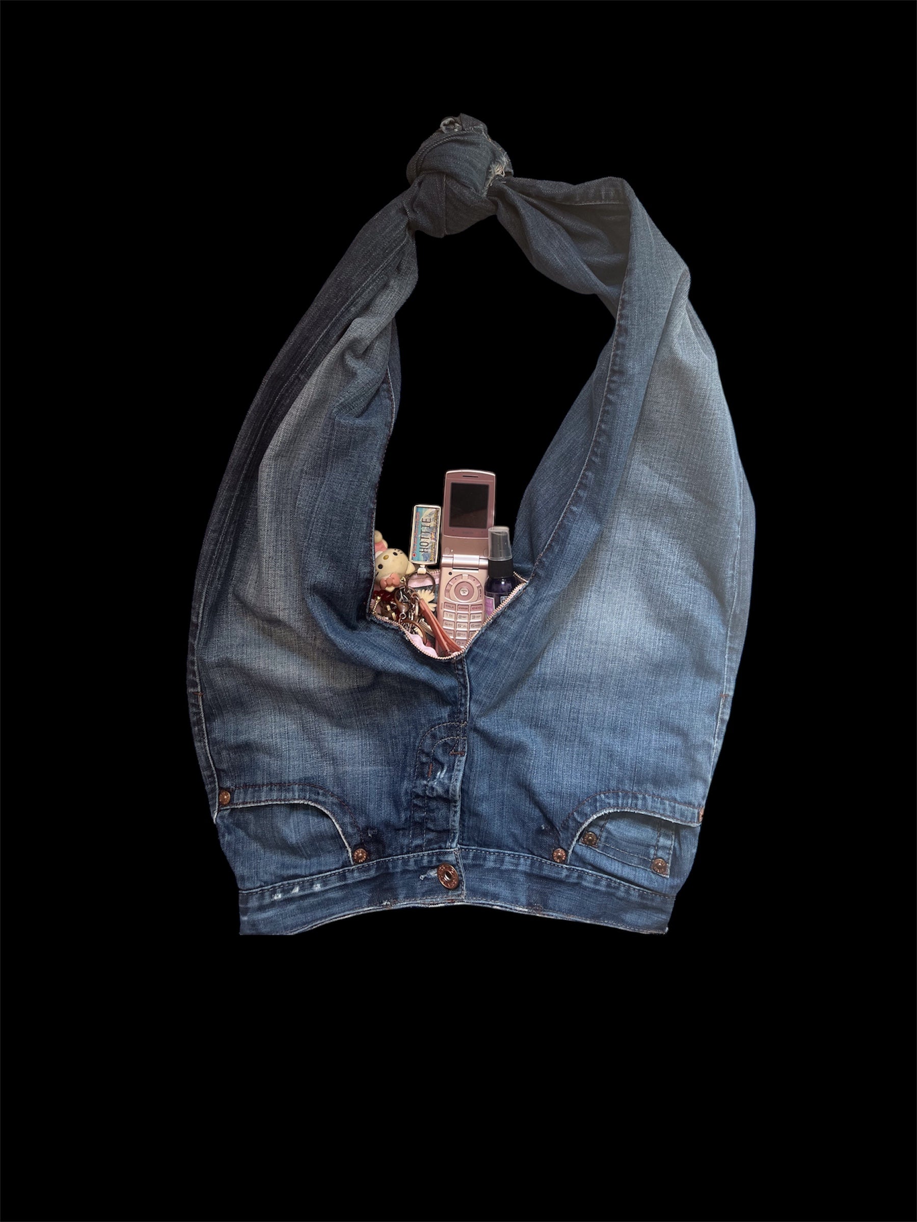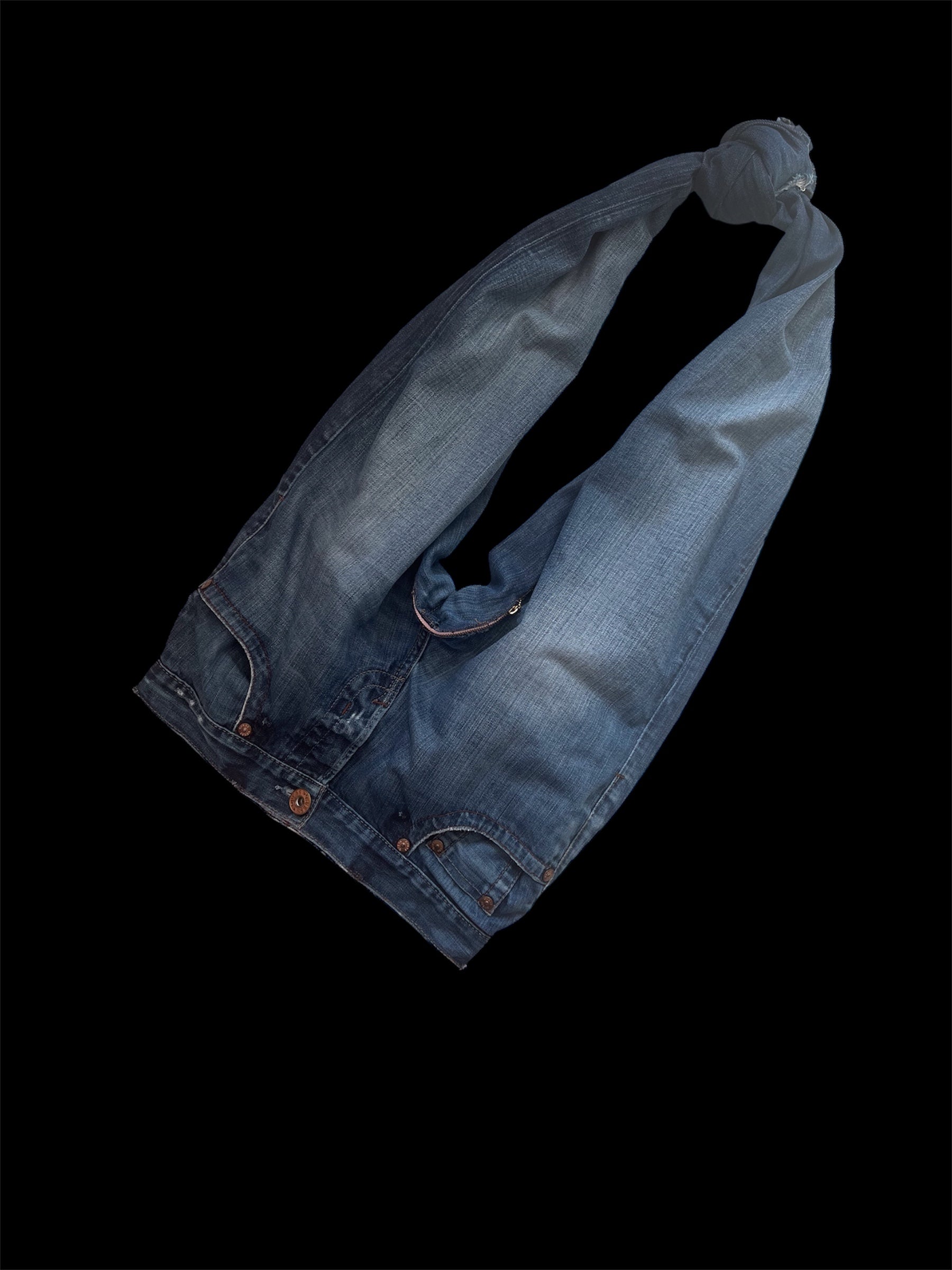 The In my Jean Shoulder Bag is crafted from 100% denim, repurposed from jeans for a unique touch. With its oversized design and durable construction, this bag is both stylish and functional, making it the perfect accessory for any outfit.