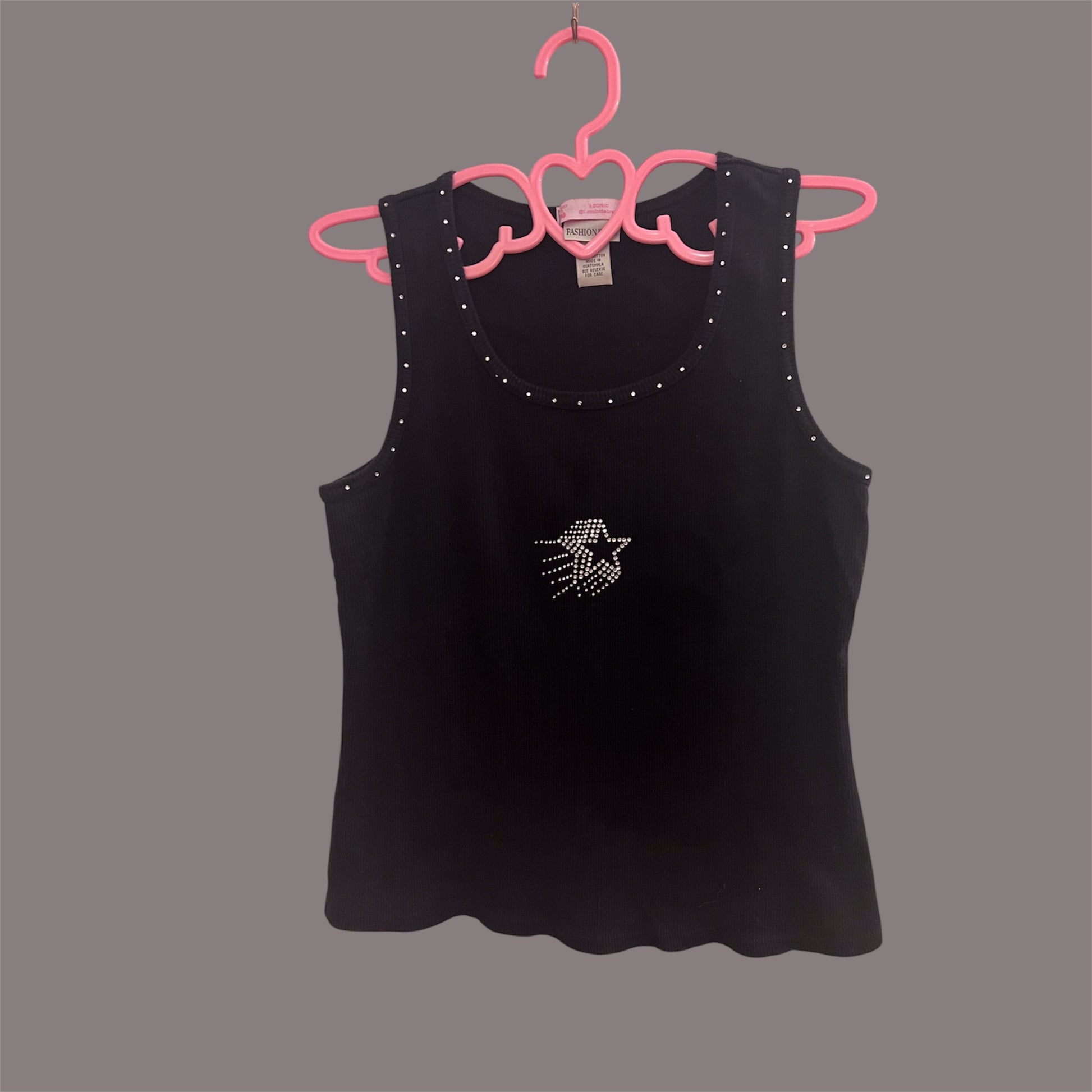 Shooting Star Rhinestone Tank is adorned with a rhinestone trim collar and an shooting star design, this tank is sure to make you stand out from the crowd. Perfect for adding a touch of sparkle to any outfit, making you the star of the show.