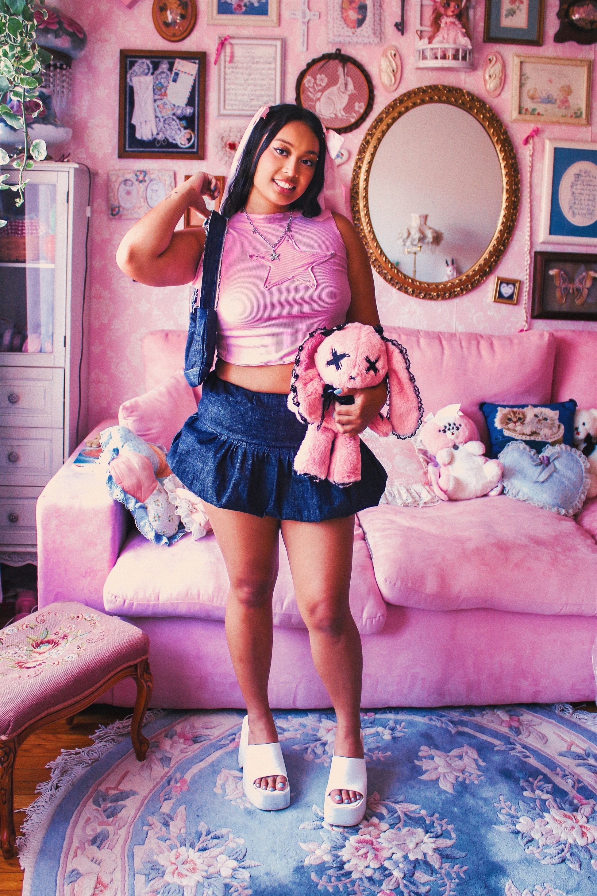 The Diva star tank is out of this world! Made from soft and stretchy ribbed fabric, this cropped tank is perfect for wearing alone or layered over a button-up or sheer shirt. It's a versatile piece that will make you stand out in any crowd. Features star patch with removable safety pins.